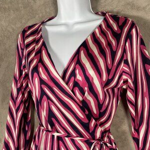 Diane von Furstenberg Naoki Wrap Dress 8 Pink Printed Silk Blend Retro Barbie