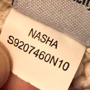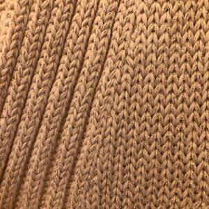 In gently worn but excellent condition. The knit has a bit of a irregular style. A bit of gold metallic touch.