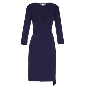 The best friend in your closet. Cut from our signature jersey, this knee-length wrap dress has three-quarter length sleeves, a V-neck and true wrap closure. The fabric is a perfect weight and doesn't wrinkle, making it the ultimate year-round travel companion. It’s timeless, feminine, and versatile! This Diane von Furstenberg New Julian Two Stretch-Jersey Wrap Dress is a wardrobe essential featuring a wrap front, ¾-length sleeves, and a self-tie waist belt. Crafted from stretch jersey in a classic silhouette.