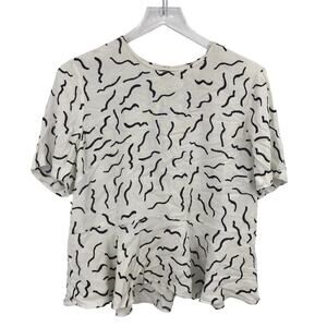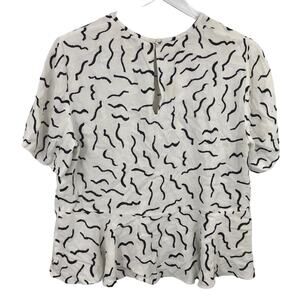 Diane von Furstenberg Orilla Top Blouse M Peplum Short Sleeve Crew Neck Keyhole