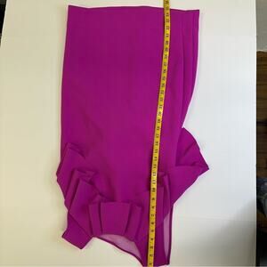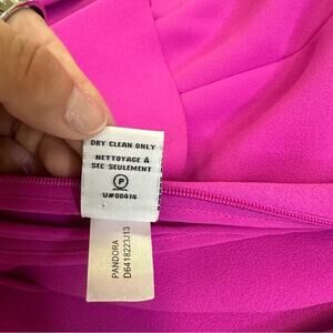 Elevate your wardrobe with this stunning Diane von Furstenberg pink ruffle dress, perfect for any special occasion. This dress features a vibrant pink hue with a ruffled front design that adds a touch of elegance and sophistication. Made with a blend of polyester and silk, this dress ensures a comfortable and flattering fit.