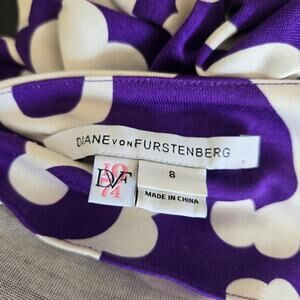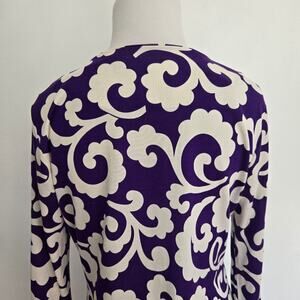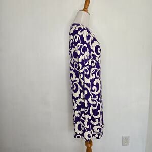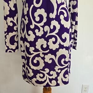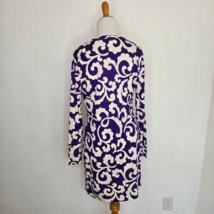 Diane von Furstenberg Reina Long Sleeve Dress Silk Purple Scroll Print Women 8