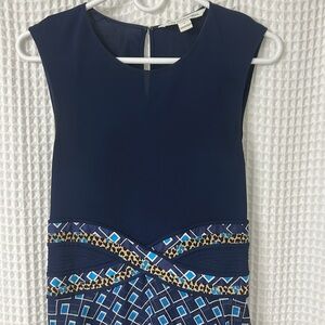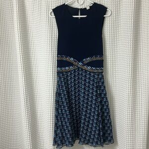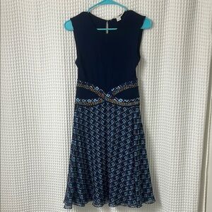 Diane von Furstenberg Rosalie Mixed Media Dress Blue Silk Size 2