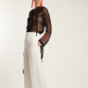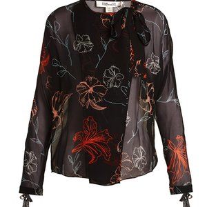 Diane von Furstenberg DVF Sheer Tie Neck Silk Blouse