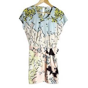 Diane von Furstenberg Silk Abstract Print Short Sleeve Sheath Mini Dress Size 0