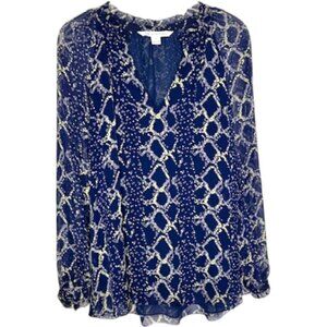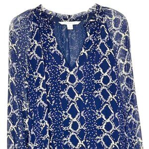 Diane von Furstenberg Silk Leysa Long-Sleeved Blouse - Navy/Ivory - 8