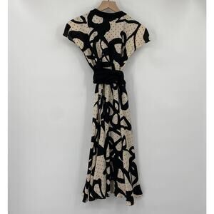 Diane von Furstenberg Silk Wool Midi Dress Abstract PolkaDot Print Black Ivory 4