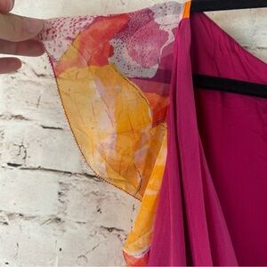Diane von Furstenberg Size 10 Orchid Lei Blouse Ruffle Sleeve Silk Tie Wrap Top