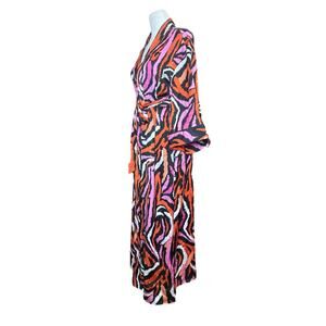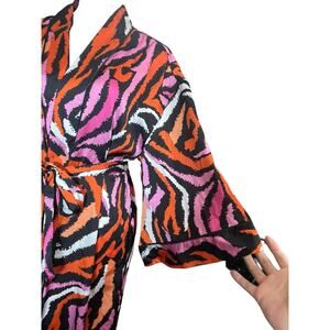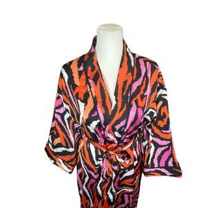 Diane von Furstenberg Target Bell Sleeve Satin Disco Zebra Pink Bath Robe