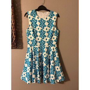 Diane von Furstenberg Textured Cotton Blue White A Line Dress 6 New