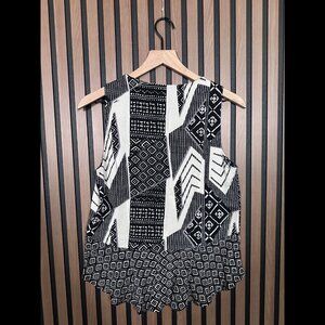 Diane von Furstenberg Top Small Womens White Black Sleeveless Multi Print Silk