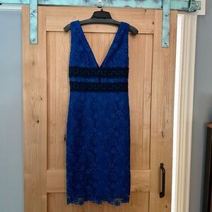 Diane von Furstenberg Viera Royal Blue & Black Floral Lace Sheath Dress Size 6