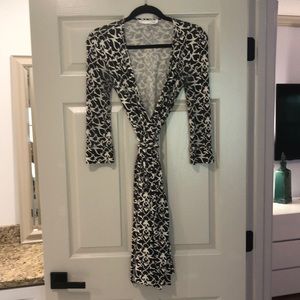 Diane von Furstenberg Vintage 100silk wrap dress black & creme ultra soft Size 2