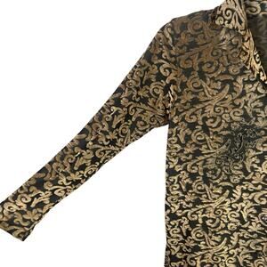 This vintage Diane von Furstenberg women’s top from The Color Authority collection features luxurious gold burnout velvet with a button-up front, perfect for elegant or evening wear.