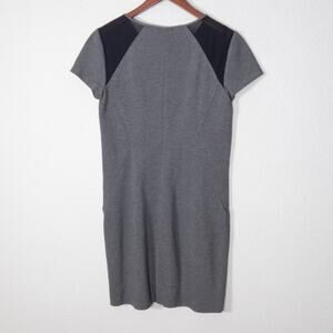 Diane von Furstenberg women’s sheath dress in charcoal gray with black mesh shoulder panels. Women’s size 12. Soft stretch blend with a back zip closure and clean, structured silhouette. The mixed textures and tailored lines define the capsule minimalist aesthetic: refined, versatile, and quietly luxurious.