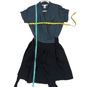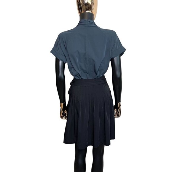 ✨Diane von Furstenberg Wrap Dress | Slate Blue Top & Black Pleated Skirt Size 4