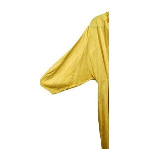 This stunning DVF piece features a deep V neckline, soft draped front, and flowing silhouette that flatters every shape. The vibrant yellow hue adds a radiant pop of color, perfect for special occasions, summer events, or chic daytime looks.