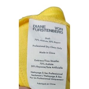 This stunning DVF piece features a deep V neckline, soft draped front, and flowing silhouette that flatters every shape. The vibrant yellow hue adds a radiant pop of color, perfect for special occasions, summer events, or chic daytime looks.
