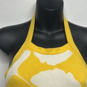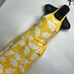 Diane von Furstenberg Yellow halter top maxi dress size medium ginkgo leafs