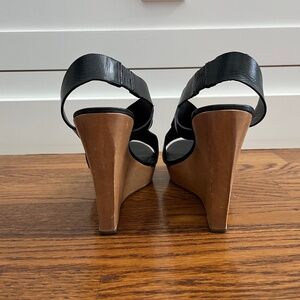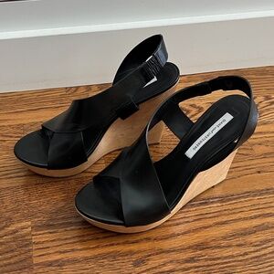 Diane von Furstenberg black leather platform wedges, size 7.5