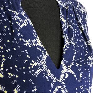 Diane von Furstenberg navy blue yellow geometric print silk top size 4