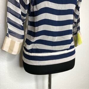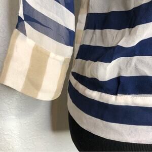 Diane von Furstenberg navy tan white stripe sheer silk cowl neck top size 2
