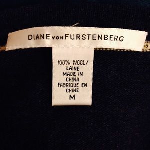 Diane von Furstenberg navy wool dress with white zig zag and beading embellishment. Size medium. Dry clean only. Message for any additional details or questions! Make me an offer!