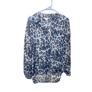 Diane von Furstenberg silk chiffon sheer Blue leopard Top sz 2 Oversized Button.