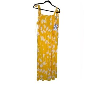 Bright and breezy collaboration piece from Diane von Furstenberg for Target. This sunshine-yellow maxi dress features bold white florals, tie straps, and a smocked bodice for the perfect fit. Flowy and lightweight with side slits and pockets—ideal for summer outings, vacations, or garden parties. NWT!