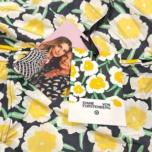 Diane von Furstenberg x target collab Women's Nylon Packable Yellow Poppy Short Sleeve Hooded Vest Large NEW. Bright, colorful, fun, and packable!