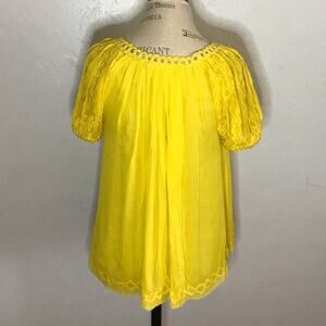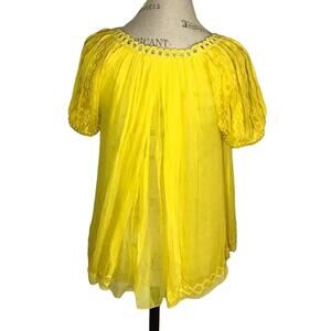Diane von Furstenberg yellow silk sheer Flowy blouse with lace sleeves size 0