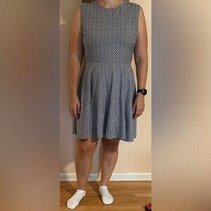 Diane von furstenberg Sleeveless Fit & Flare Geometric Print Dress 12 blue and cream