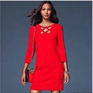 DVF- Striking lattice detail at the front and back neckline enhances the blithe spirit of a woven shift dress cut in a flattering silhouette. Color(s): poppy. Brand: DIANE VON FURSTENBERG. Style Name: Diane von Furstenberg 'Carmen' Dress.