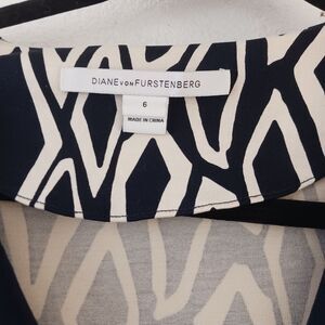 Diane von Furstenberg Long Sleeve Shift Geometric blue and cream Dresse size 6. pre-owned. great condition