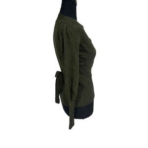 Moss green DVF wrap cardigan in merino wool, form-fitting. Super lightweight and soft. Comes from smoke free home.