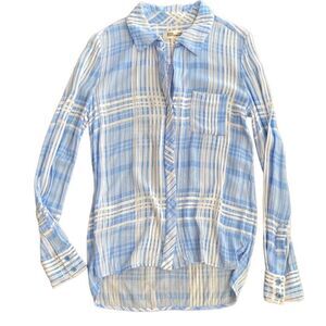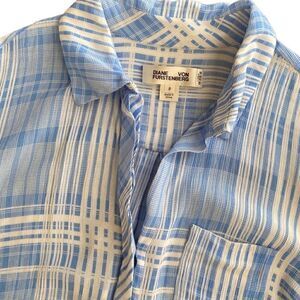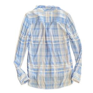 Diane Von Furstenberg Carter plaid shirt in 8. The blouse is pre-owned and there are no stains or rips. Minor wear/pilling.