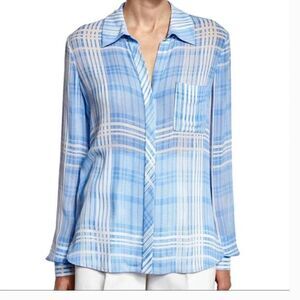 Diane Von Furstenberg Blue and White Carter Plaid Button Down Shirt