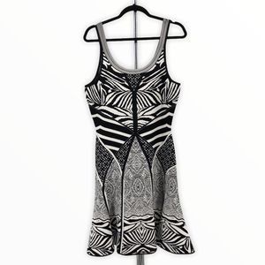 DVF STUNNING Black & White Fanny dress, style seen on Marlo Hampton. Bold zebra and stripe fit and flare heavier knit with a lot of stretch to it.