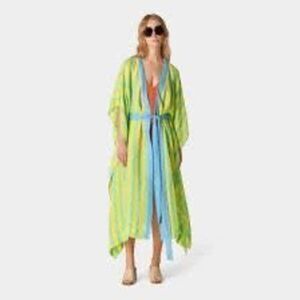 Diane Von Furstenberg Kimono Wrap Dress Size S Linen Striped Flowy Boho Resort
