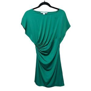 Diane Von Furstenberg Jenna Green Silk Blend Ruched Sheath Dress | Size 6