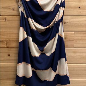 Abstract Tie Dye Splotchy Style Patterned Silk Knee Length 3/4 Dress With Ruching & Wrap Style Bodice