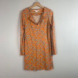 Diane von Furstenberg orange, long sleeved, Split neck shift dress.