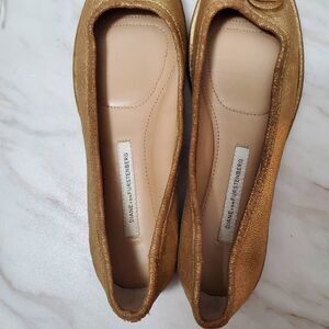 Diane Von Furstenberg Gold Leather Ballet Flats Size 7