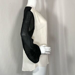Sharp pleats shape the saddle shoulders of this silk top framed with billowy black contrast sleeves, making it a fun, monochrome study in contrasts.