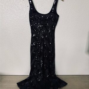 Women’s size 4 Diane von Furstenberg formal black form fitting sequin cocktail or special occasion dress in excellent preowned condition. Seems to run small, measurements coming soon. Stunning dress, photos do not do justice! No observed flaws, clean nonsmoking home. Luxurious silk fabric.