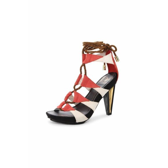Diane von Furstenberg heels, DVF shoes, colorblock heels, lace up heels, designer heels size 6.5, luxury shoes, peep toe heels