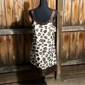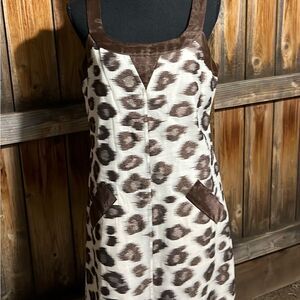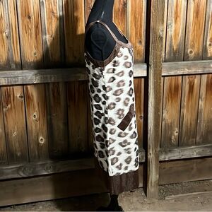 Diane von Furstenberg dress is sleeveless with pockets in a cotton/silk blend, brown/tan geometric print, copper thread, slip-on