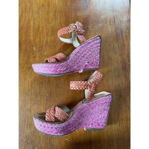 Diane von Furstenberg pink and coral basket weave wedges, size 6, heel height is 4 1/4 inches, some wear, but still have life in them