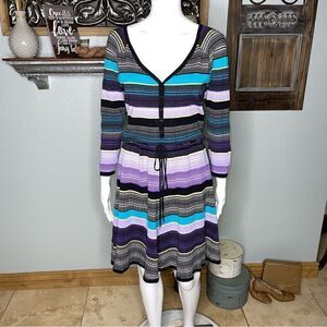 Diane von Furstenberg Carrigan Striped Fit-and-Flare Dress, Lavender Size Med