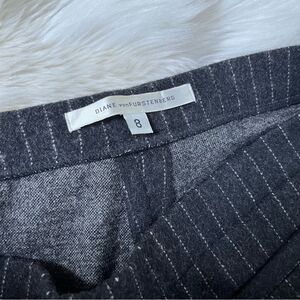 Beautiful and chic pinstriped pants by Diane von furstenberg. Cuff at bottom. Faux pocket in front. Great preowned condition, could use a good dry cleaning. Lying flat waist approx 15” across and inseam approx 32.5” and front rise approx 10”. All measurements are approximate